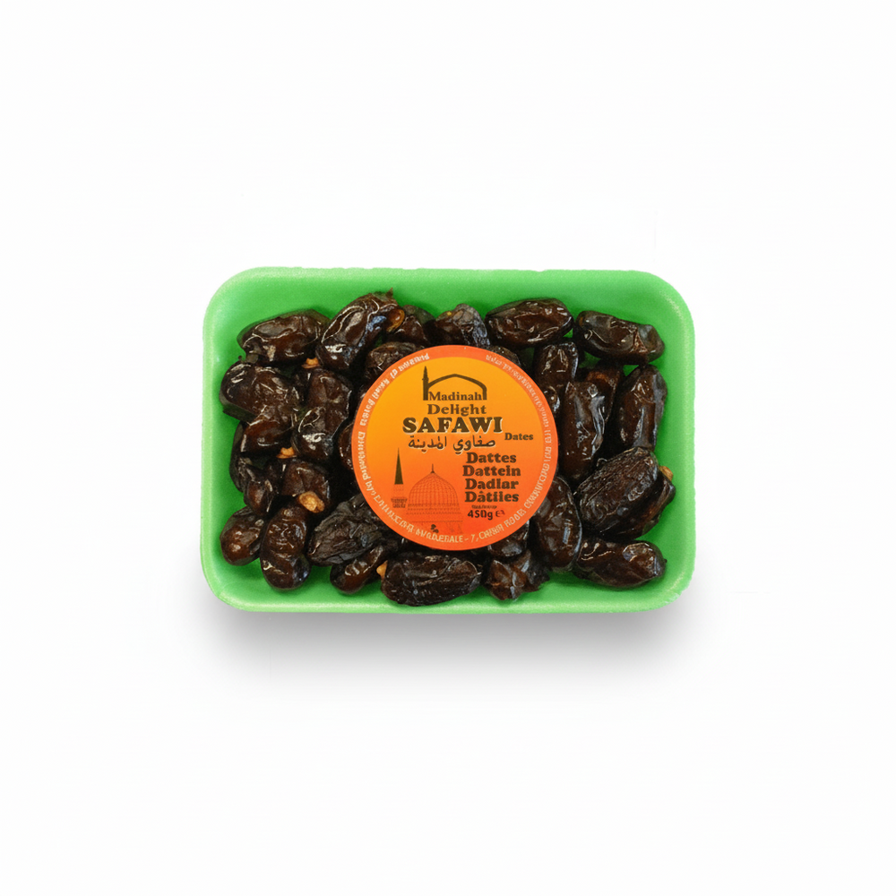 # تمور المدينة المنورة صفوي 450 غرام. تمثل تمور المدينة المنورة صفوي أجود أنواع التمور من مناطق زراعة التمور الشهيرة في المملكة العربية السعودية. تتميز هذه التمور الداكنة والطرية بنكهتها الغنية والمعقدة وحلاوتها الطبيعية. بفضل قوامها الناعم الذي يذوب في الفم، تقدم تمور صفوي تجربة طهي أصيلة متجذرة في قرون من التقاليد الشرق أوسطية. تحتوي كل عبوة 450 غرام على ثمار غنية بالعناصر الغذائية، بما في ذلك السكريات الطبيعية والألياف والمعادن الأساسية. مثالية للاستهلاك المباشر، أو للاستخدام في الطهي، أو كإضافة صحية إلى نظامك الغذائي اليومي. يميز لونها الداكن المميز وقوامها الرطب تمور صفوي عن الأنواع الأخرى ذات اللون الفاتح، مما يجعلها خيارًا مثاليًا لمن يقدرون الجودة والأصالة.