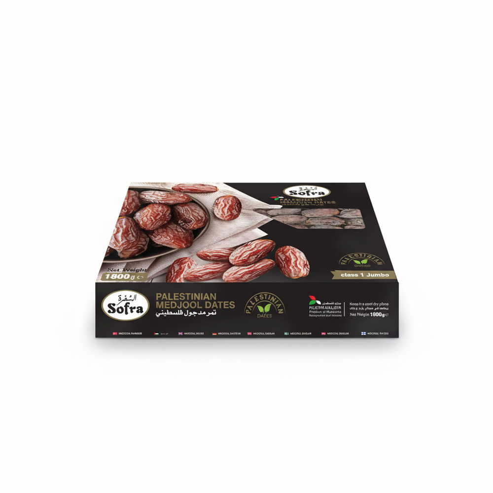 # تمر مجدول جامبو فلسطيني ١٫٨ كجم. اكتشف أجود أنواع تمر المجدول الفلسطيني، المشهور بحلاوته الغنية التي تشبه الكراميل وقوامه الناعم الفاخر. تحتوي كل عبوة ١٫٨ كجم على تمر جامبو عالي الجودة، تم اختياره بعناية وحفظه للحفاظ على نكهته الطبيعية وقيمته الغذائية. مثالي للتناول كوجبة خفيفة، أو للطبخ، أو كهدية، يقدم هذا التمر مذاقًا أصيلًا من التراث الفلسطيني. غني بالألياف والبوتاسيوم ومضادات الأكسدة الطبيعية، يوفر طاقة مستدامة وقيمة غذائية عالية. خيار مثالي لمن يبحثون عن تمر أصلي عالي الجودة بمذاق استثنائي وجودة موثوقة.