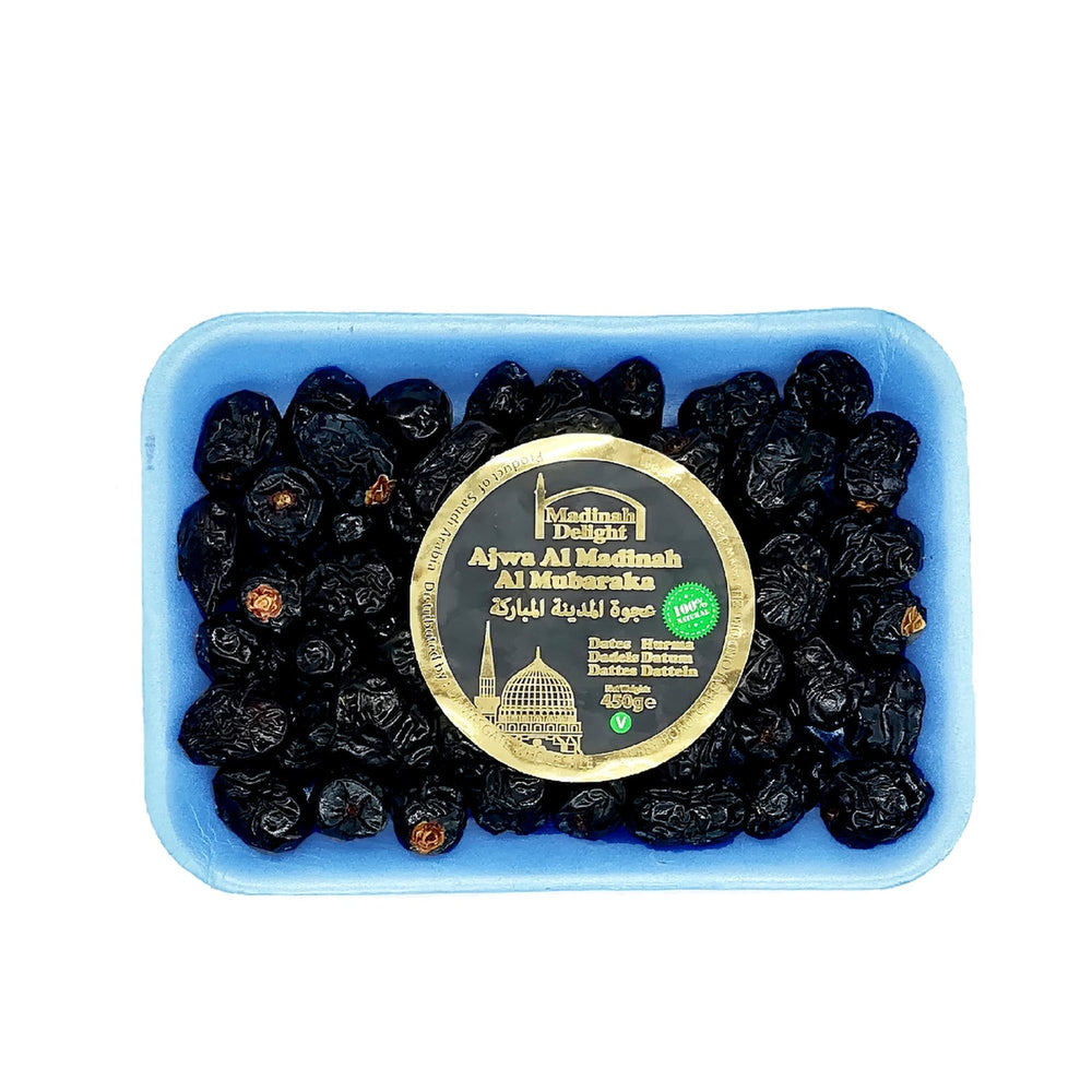 # Madinah Ajwa 450g Discover the premium quality of Madinah Ajwa dates, sourced directly from the sacred city of Medina. These naturally sweet, soft dates are renowned for their rich flavor and nutritional excellence. Each 450g package contains carefully selected Ajwa varieties, perfect for daily consumption, special occasions, or gifting. Known for their dark color and tender texture, Ajwa dates are a staple in Middle Eastern cuisine and valued for their potential health benefits. Enjoy them as a wholesome snack, incorporate them into recipes, or share their authentic taste with family and friends.