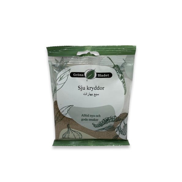 Som experter inom kryddbranschen är vi stolta över att erbjuda Gröna Bladet Seven Spices. Med en unik blandning av sju smakrika kryddor kommer denna 40g-förpackning att ge djup och komplexitet till vilken rätt som helst. Njut av fördelarna med en mängd olika smaker utan tillsatta konserveringsmedel. Krydda upp dina måltider idag!