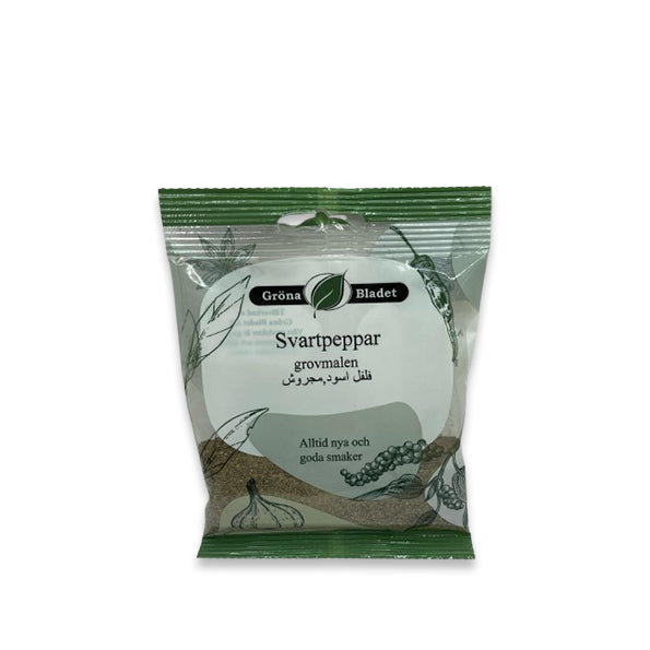 Gröna Bladet Svartpeppar Grovmalen är expertmalet för en djärv smak och är det perfekta tillskottet till vilken maträtt som helst. Denna grovmalda peppar är gjord med högkvalitativa svartpepparkorn och ger djup och smak till såser, kött och grönsaker. Förhöj din matlagning med Gröna Bladets expertis.