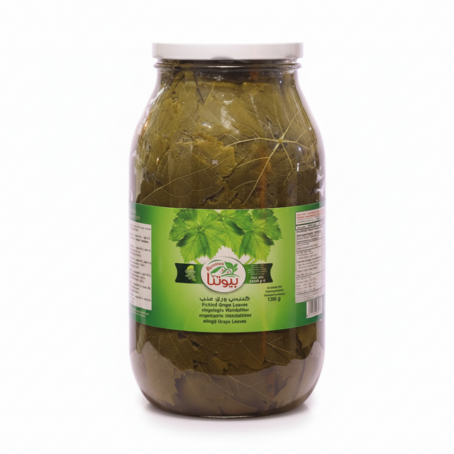 Ingredienser:inlagd 64% vatten 64%-salt 6% surhetsreglerande medel: citronsyra 1.4% surhetsreglerande medel: ättiksyra 0.6% ورق عنب