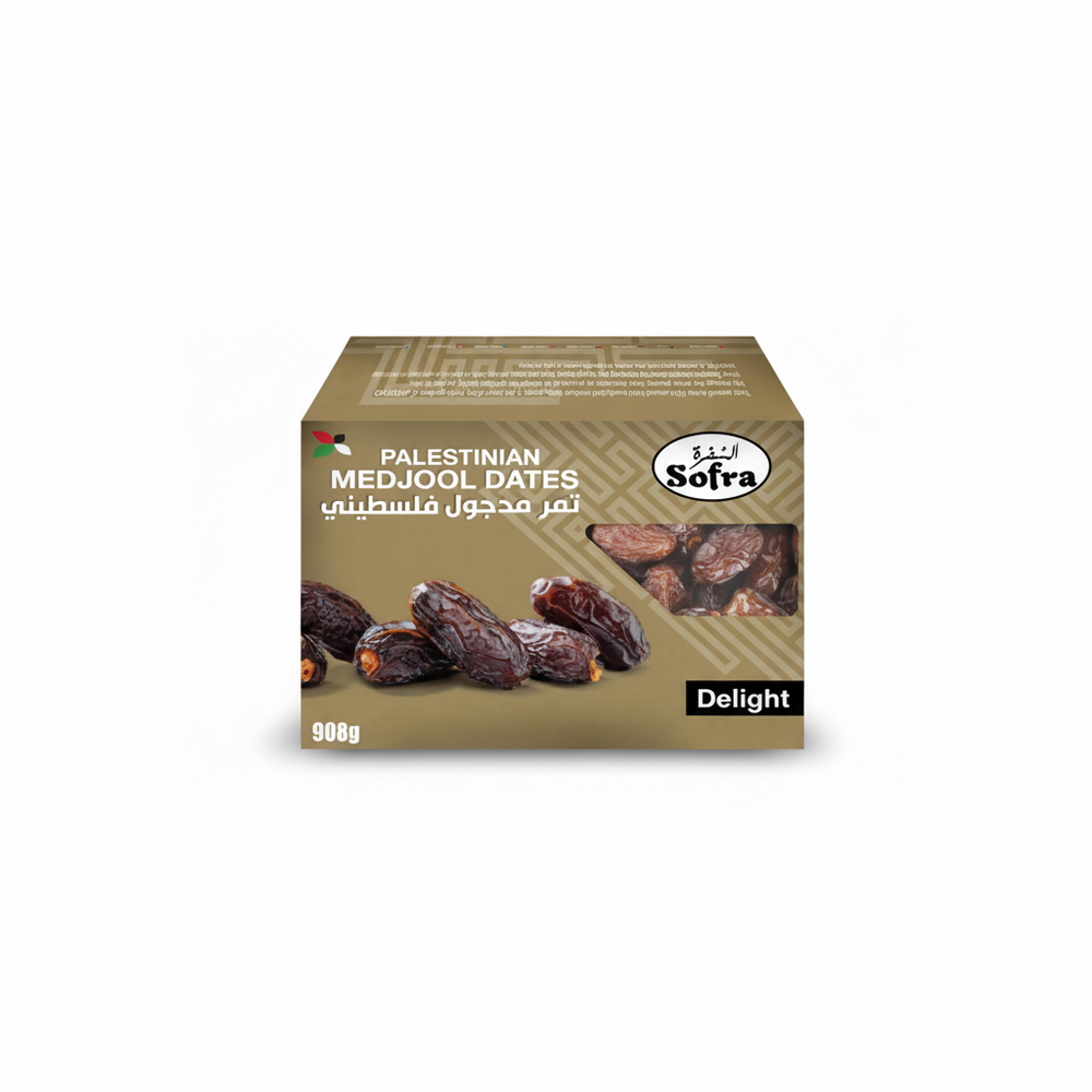 # Palestinian Medjool Delight 908g Discover authentic Palestinian Medjool dates—a premium variety celebrated for their exceptional quality and distinctive flavor profile. These plump, dark dates feature a luxuriously soft texture and complex sweetness with subtle caramel undertones. The 908g package provides generous quantity for regular enjoyment or special occasions. Medjool dates are naturally nutrient-dense, supplying dietary fiber, potassium, magnesium, and polyphenol antioxidants that support digestive health and overall wellness. Whether consumed as a wholesome snack, incorporated into desserts, or paired with nuts and cheese, these dates deliver versatile culinary applications. Their natural sweetness makes them an ideal alternative to refined sugars in smoothies, energy balls, and baked goods.